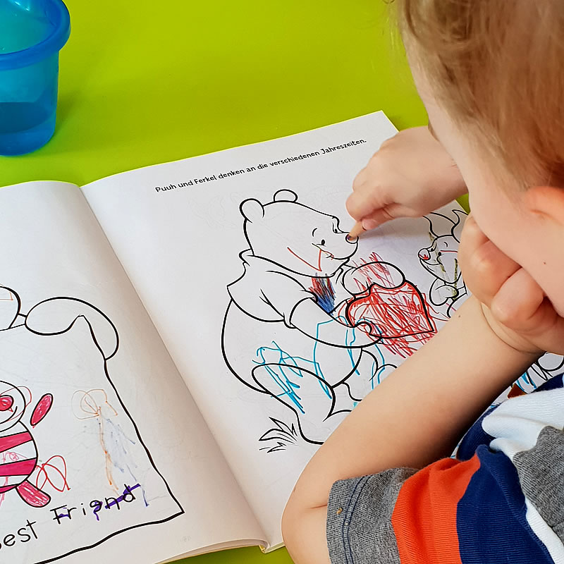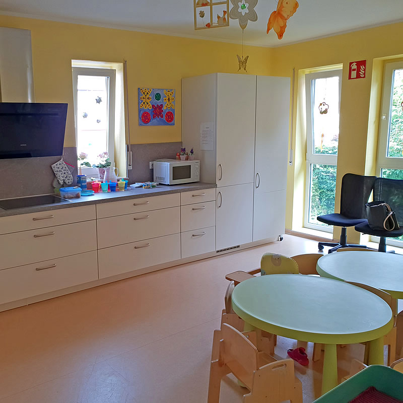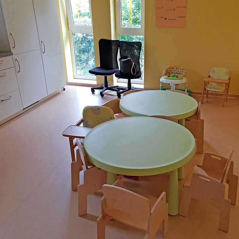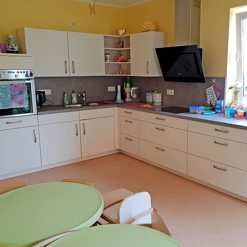 Im Vordergrund der Betreuung stehen täglich Musik, Tanzen, viele Sing- und Bewegungsspiele sowie spielerisches Lernen in Vorbereitung auf den Übergang in den Kindergarten.